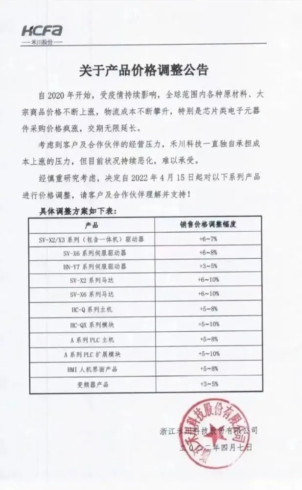 ABB、禾川、納博特、來福諧波等廠商公開宣布漲價,而私下調整價格的無疑有更多。