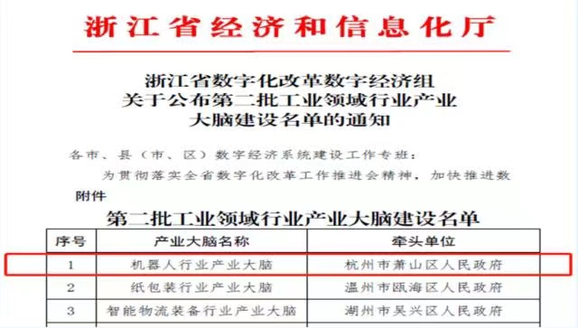 機(jī)器人行業(yè)產(chǎn)業(yè)大腦”項(xiàng)目成功入選,是杭州市唯一一個(gè)入選的產(chǎn)業(yè)大腦!