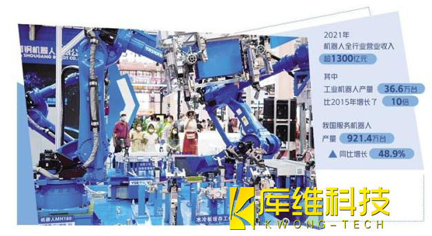 在工業(yè)和信息化部日前舉行的“大力發(fā)展高端裝備制造業(yè)”主題新聞發(fā)布會上,工信部裝備工業(yè)一司副司長郭守剛表示,我國機器人產(chǎn)業(yè)規(guī)模快速增長,2021年機器人全行業(yè)營業(yè)收入超過1300億元。其中,工業(yè)機器人產(chǎn)量達36.6萬臺,比2015年增長了10倍,穩(wěn)居全球第一大工業(yè)機器人市場。