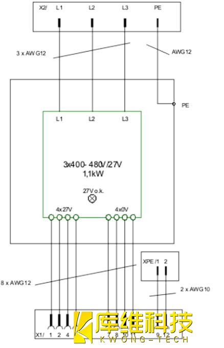 工業機器人KRC 4 27V 電源件的原理性接線圖如下