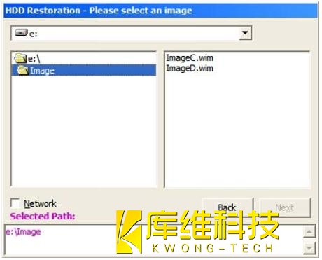 注意:只能選擇單個(gè) WIM 文件,例如為分區(qū) C: 選擇 Custom15C.WIM。當(dāng)一個(gè)對(duì)應(yīng)的 WIM 文件以相同名稱被保存,例如為分區(qū) C: 選擇Custom15C.WIM,則將自動(dòng)恢復(fù)兩個(gè)分區(qū)。