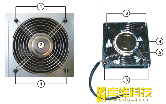安裝工業機器人控制系統 PC 機的風扇如下圖