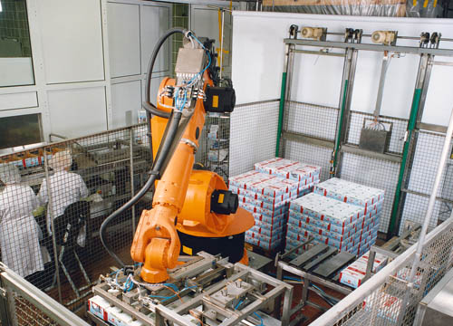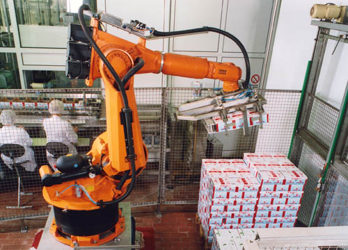 適用化工、建材、飼料、食品、飲料、啤酒、自動化物流等行業(yè),配以不同抓手,可實現(xiàn)在不同行業(yè)各種形狀的成品進行裝箱和碼垛。