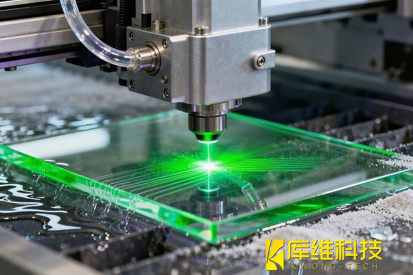 綠光激光(532nm):綠光在水中傳輸損耗小,且波長短導致光能轉化效率高,尤其適合硬脆材料加工。例如,碳化硅(SiC)對綠光的吸收率比紅外光高3倍以上,可實現切縫窄(≤20μm)、邊緣無崩邊的精密切割。