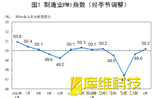 從分類指數上看,6月份生產指數和新訂單指數分別為52.8%和50.4%,高于上月3.1個和2.2個百分點,均升至擴張區間,且增速較快.