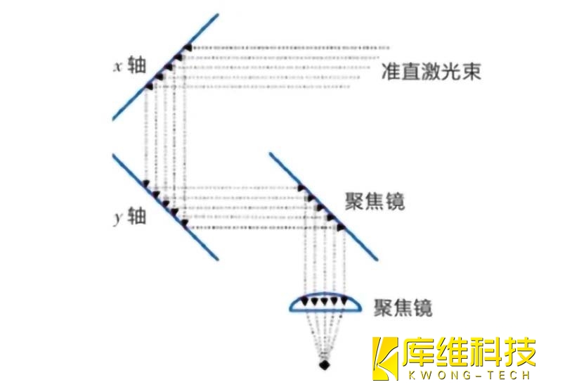振鏡焊接頭的主要組成部分為擴(kuò)束準(zhǔn)直鏡、聚焦透鏡、XY 兩軸掃描振鏡、控制板卡以及上位機(jī)計算機(jī)軟件系統(tǒng)。振鏡可以改變激光光束的方向,通過電磁驅(qū)動機(jī)構(gòu)帶動擺動或通過步進(jìn)電機(jī)驅(qū)動旋轉(zhuǎn)掃描。通過振鏡的運動,可以實現(xiàn)對光束的快速掃描,控制光斑在焊縫上高速移動,獲得理想的焊縫。光束從QBH進(jìn)入準(zhǔn)直模塊,轉(zhuǎn)變?yōu)槠叫泄馐俳?jīng)過聚焦模塊進(jìn)行聚焦,以糾正激光束在聚焦平面上的枕形畸變,保證光束在同一焦平面內(nèi)的精準(zhǔn)移動。目前,實現(xiàn)光束擺動主要通過能夠承受高功率激光的振鏡實現(xiàn),如圖所示。