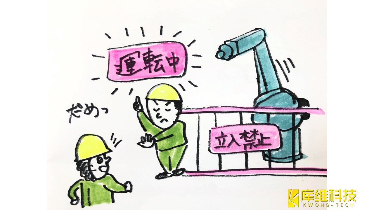 但工業機器人的大部分示教工作都是在驅動源(伺服電源)開啟的情況下完成的,而且工作必須在工業機器人的可移動區域內完 成。這是一項不符合這兩個條件的危險任務。因此,在教學工作中要不斷地有“工業機器人不知道何時動”的危機感,思考“故 障對策”。
